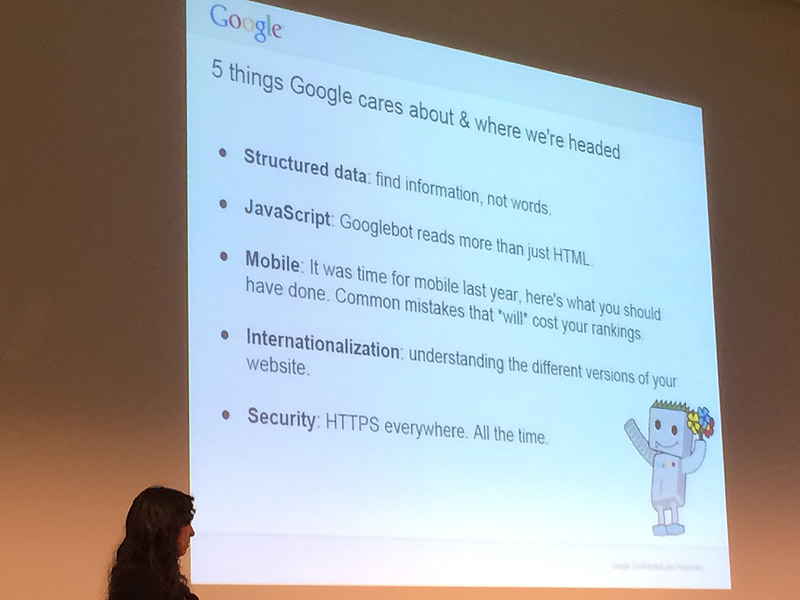 Den Beginn machte Rand Fishkin mit seiner Keynote "Maximale Sichtbarkeit 2014: der Schlüssel zum Erfolg". Dabei zeigte er vor allem 5 Bereiche auf, die sich stark verändern.